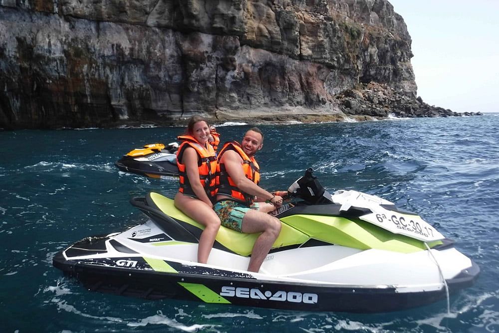 Habrá una parada intermedia donde se podrá realizar un reportaje fotográfico y distintas opciones como darse un baño en el mar…Duración: 1 hora aproximadamente.Llega: 30 minutos antes a las instalaciones para la entrega de accesorios, consejos e información.Imprescindible: saber nadar y ajustar bien el chaleco.La ruta incluye: guía titulado.Edad mínima para pilotar una moto de agua: 18 años o 17 años con consentimiento de los padres o tutores.Edad mínima del acompañante: 12 años.Lleva: ropa de baño, calzado acuático, protección solar, gorra, gafas con sujeción y toalla.
